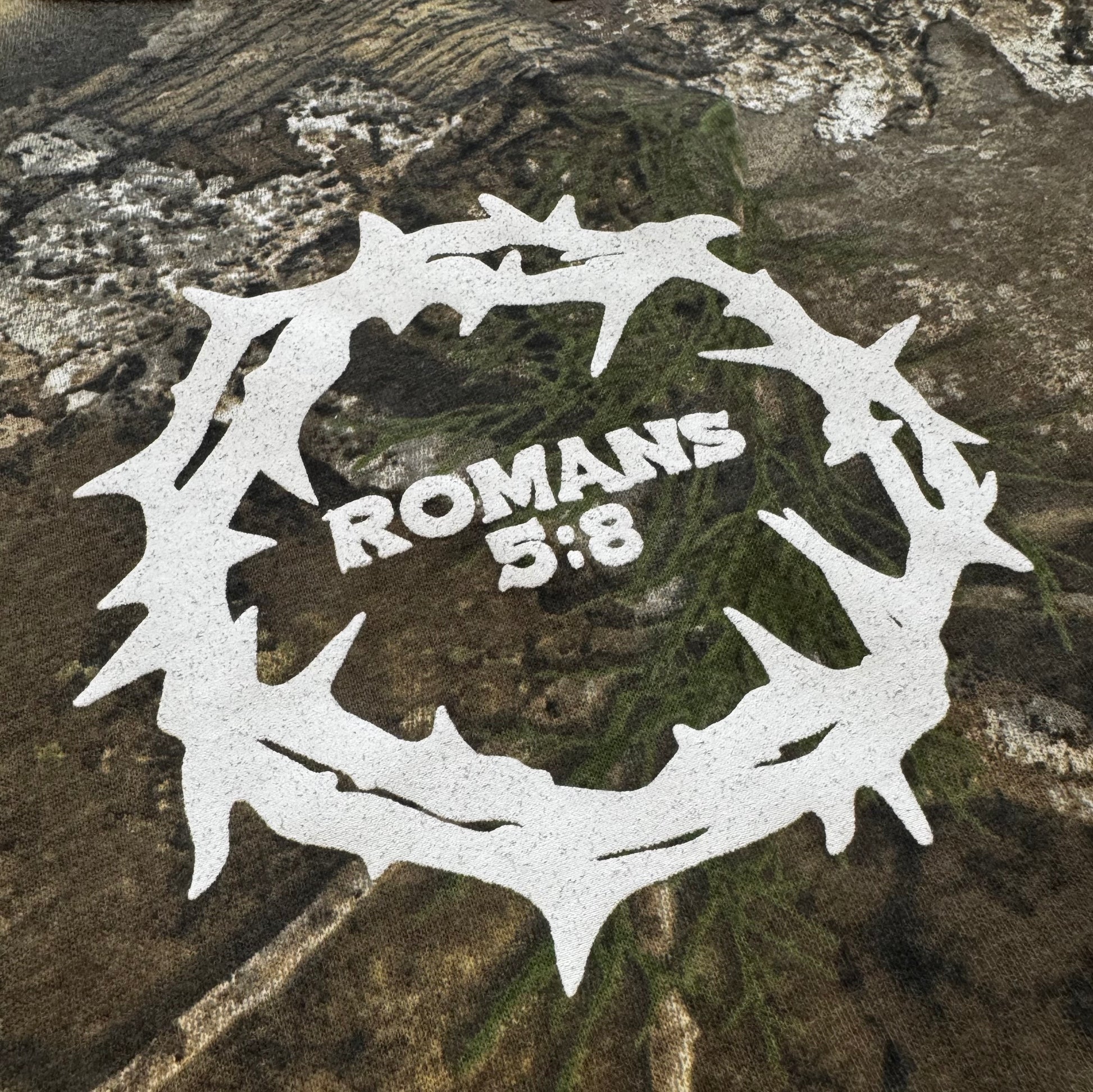The crown of thorns is a symbol of Christ’s death just like the cross. Paired with this verse, it symbolizes Christ’s love in his death for us when we were at our worst and couldn’t save ourselves.